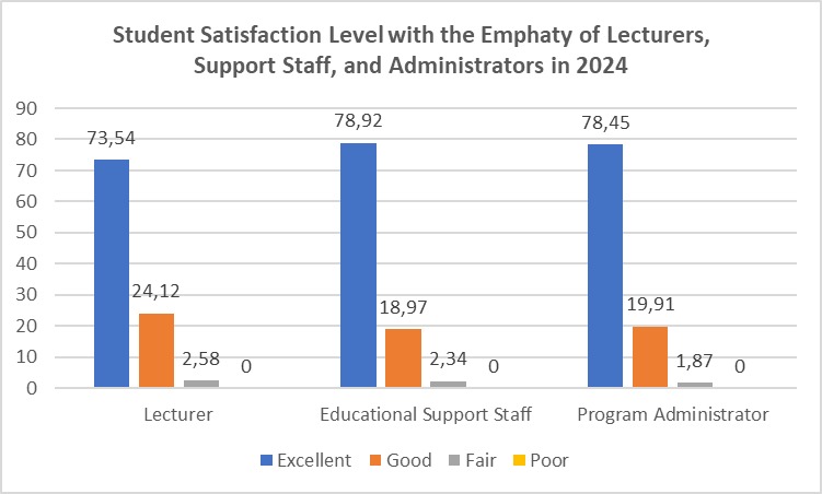 Student Satisfaction Level with the Emphaty of Lecturers, Support Staff, and Administrators in 2024